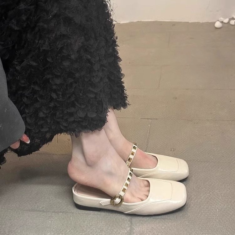 French niche design sense Baotou half slippers summer one-length strap rivet mules with skirt sandals