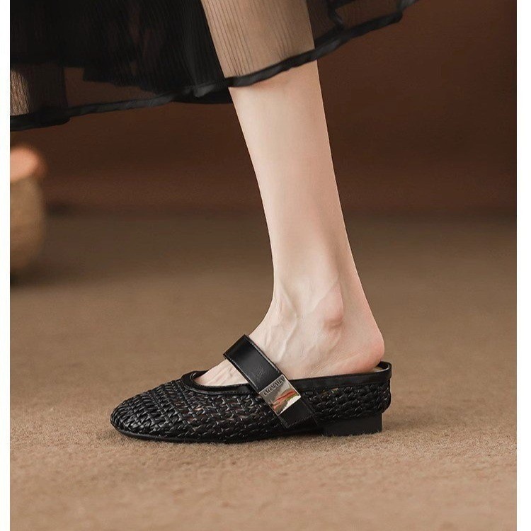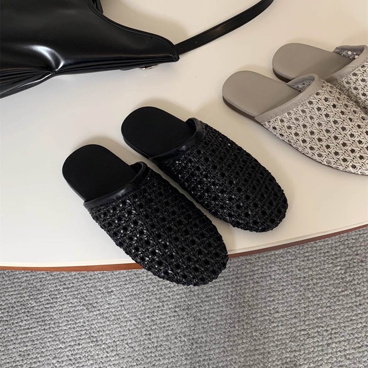 French hand-woven hollow sandals for women in summer one-strip breathable half-slippers for outdoor shoes