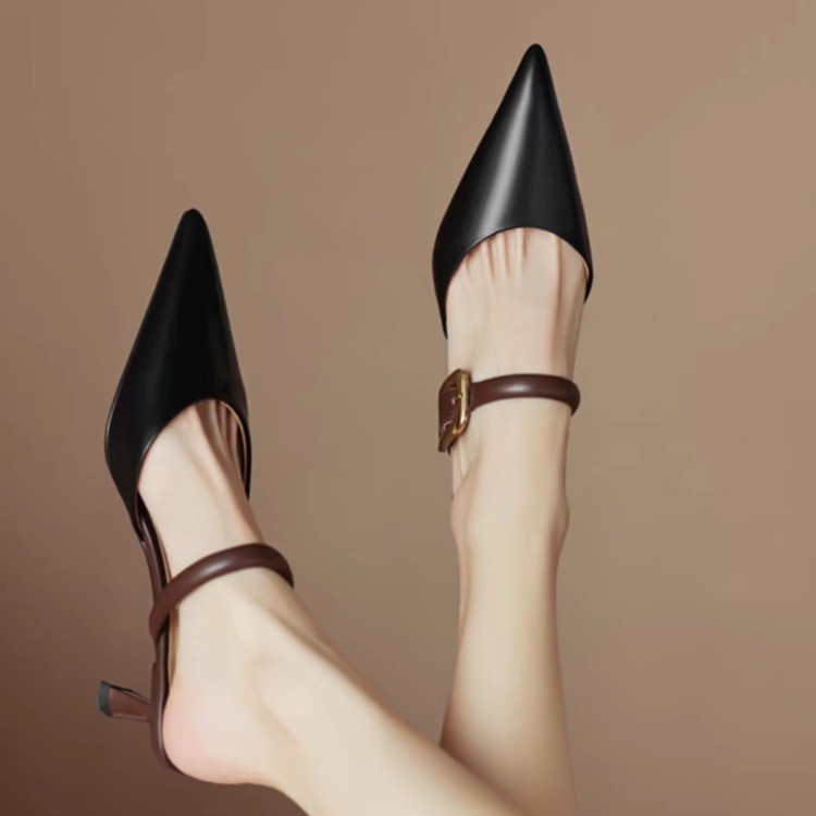French summer light mouth pointed toe thin heel strap bag head soft leather temperament slippers for women wearing sandals
