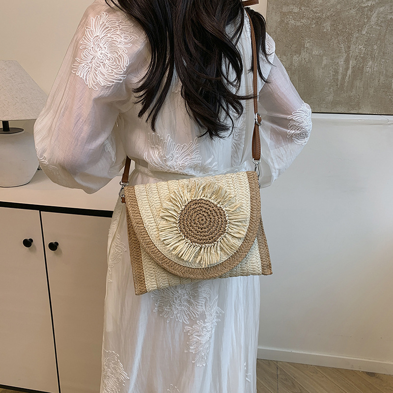 Simple handmade straw woven bag large capacity one-shoulder hand-held beach vacation fashionable versatile crossbody bag