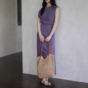 Eryang Design Weiyang New Chinese Style Slanted Neck Dress Female Temperature Purple Design Waist-Close Long Skirt