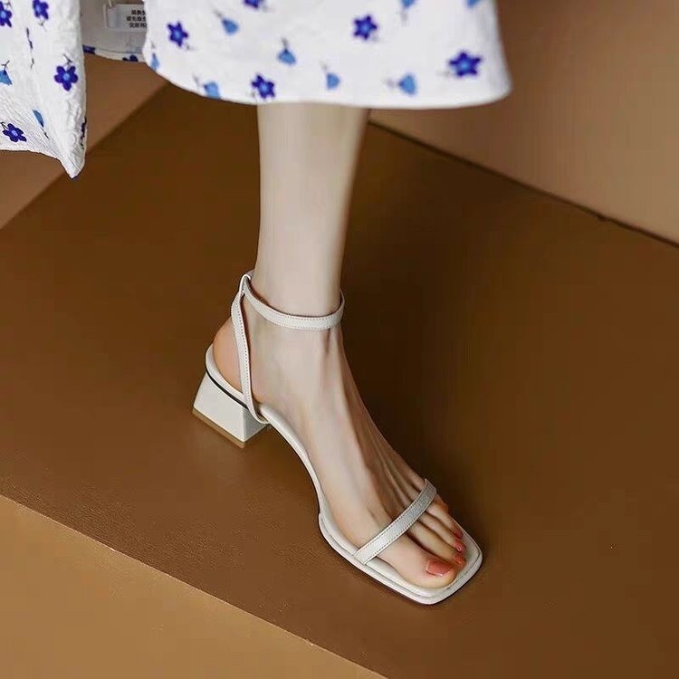 French style square-toe open-toe thick-heeled sandals for women in summer one-strip beautiful high-heeled sandals