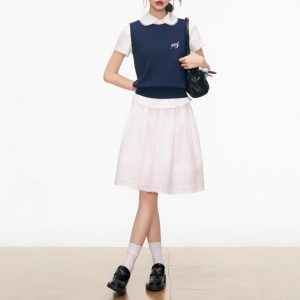 Month issue shirt, mid skirt, vest, three-piece commuting suit for summer women