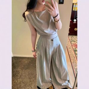 Yuzhi commuting striped wide-leg pants summer pleated design casual versatile trousers for women