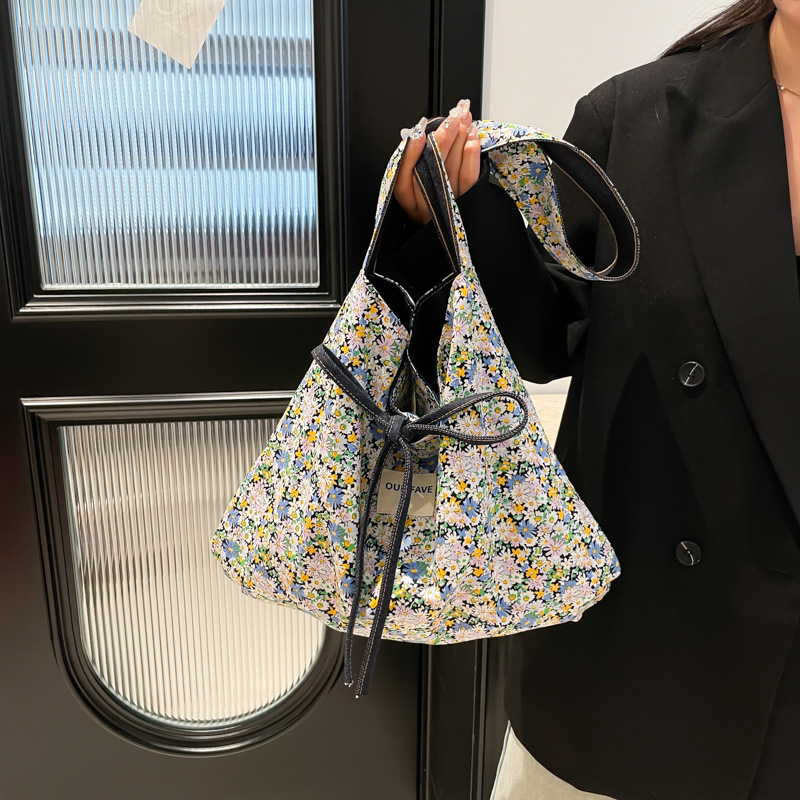 Spring and summer Korean versatile dopamine color block large capacity shoulder bag floral double-sided crossbody bag for women