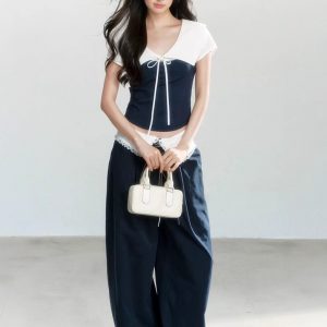 Rabbit ears well-behaved short-sleeved shirt three-color summer slim shoulder top makes you look thin