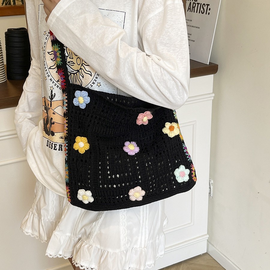 Casual hollow bag knitted beach bag women’s yarn large capacity knitted trunk one shoulder spring and summer