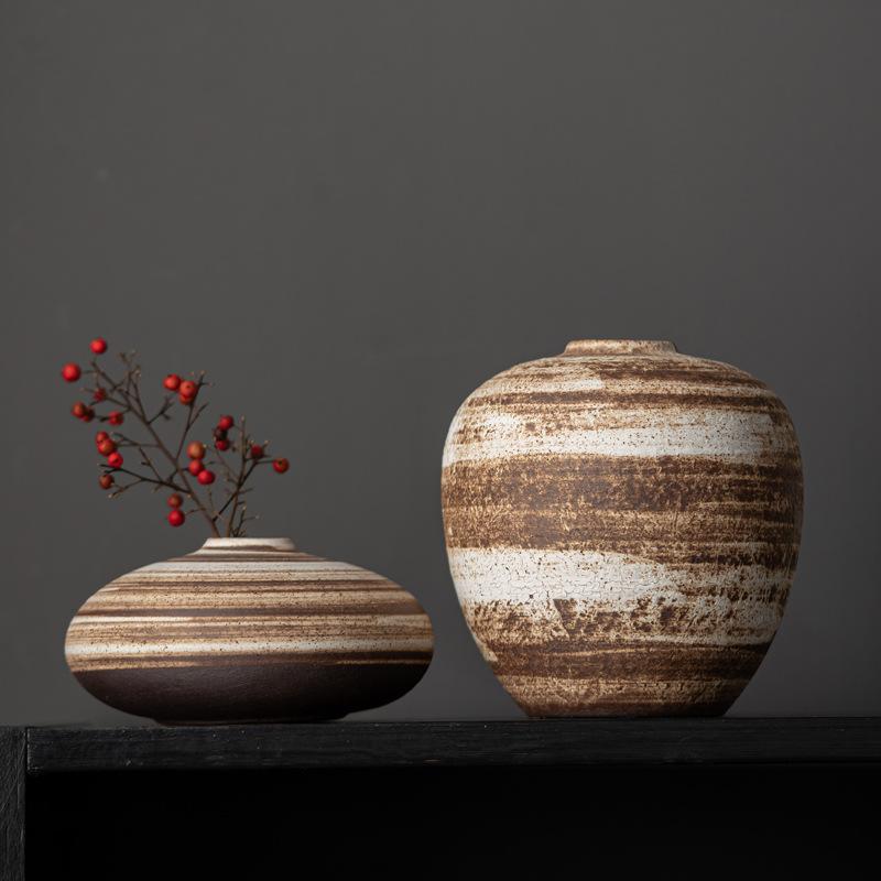Simple and coarse pottery sabi style ceramic vase high-end flower insert light luxury home soft decoration ornaments