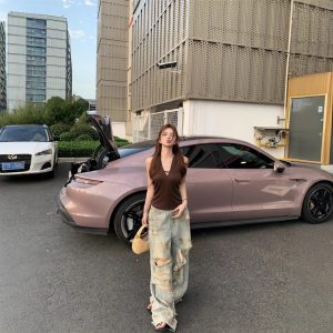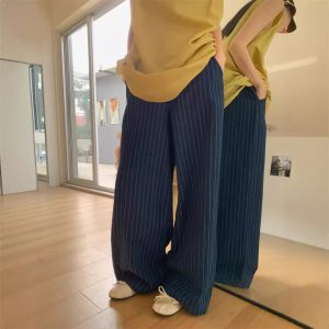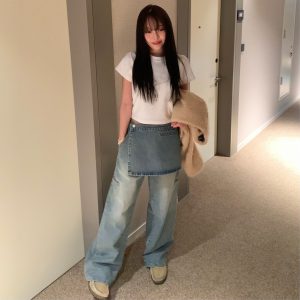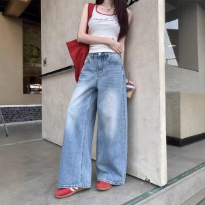 American retro denim scimitar pants spring loose and versatile design wide-leg pants high-waist casual pants trendy