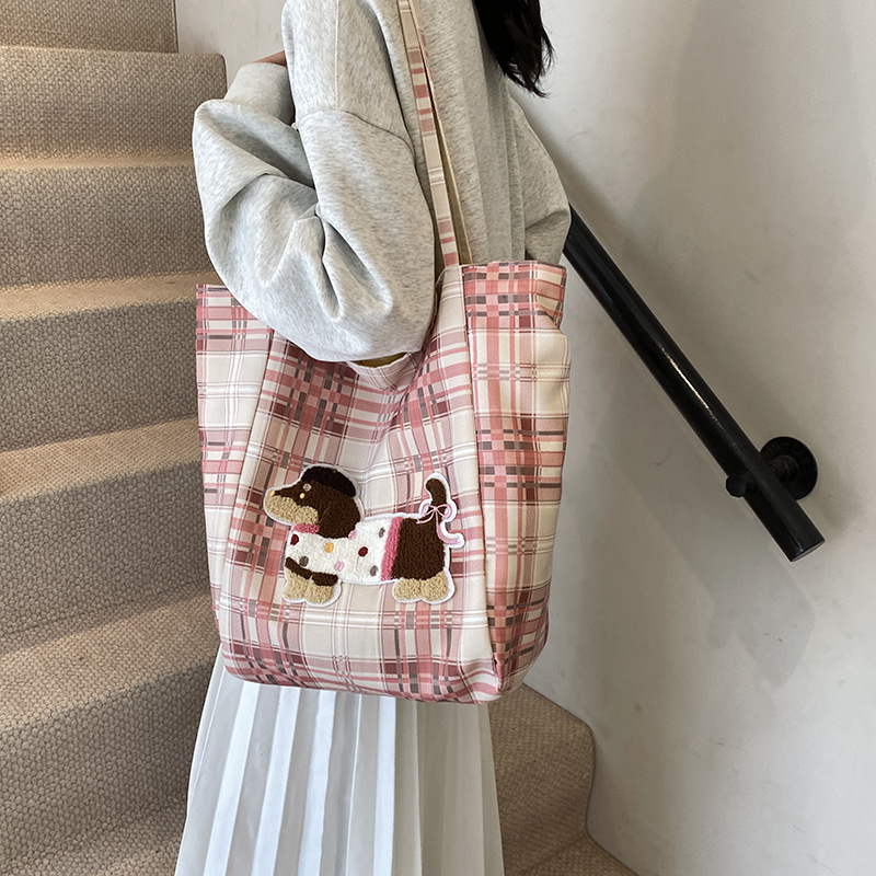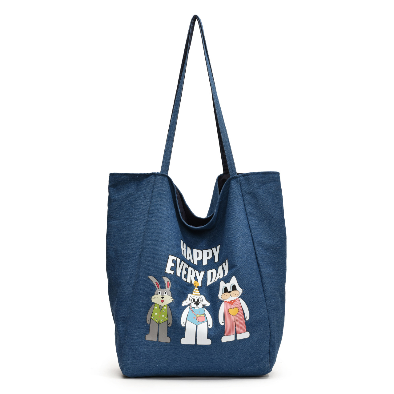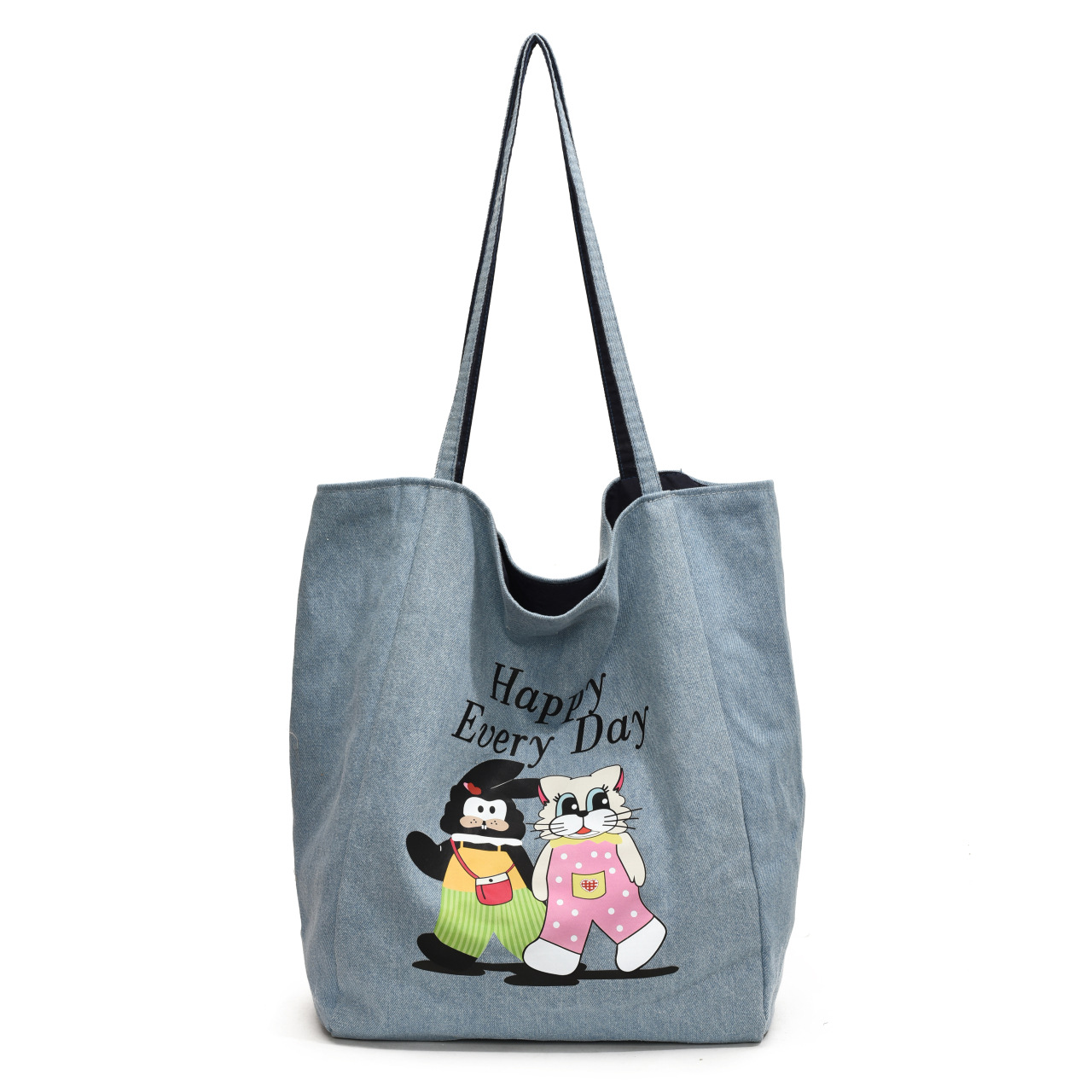 Canvas bag style versatile shoulder bag large capacity cartoon denim double-sided canvas commuting tote bag