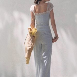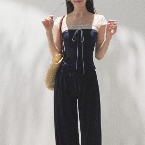 * Cotton lace spliced bow design cool and skin-friendly simple short-sleeved shirt top