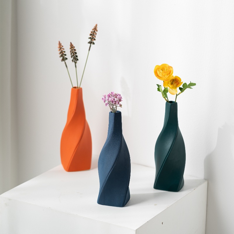 Damon Lubao geometric spiral thin-mouth flower insert modern simple ceramic vase home light luxury soft decoration ornaments