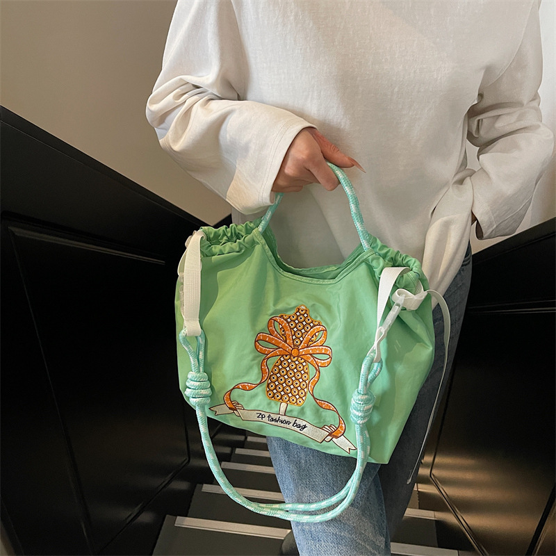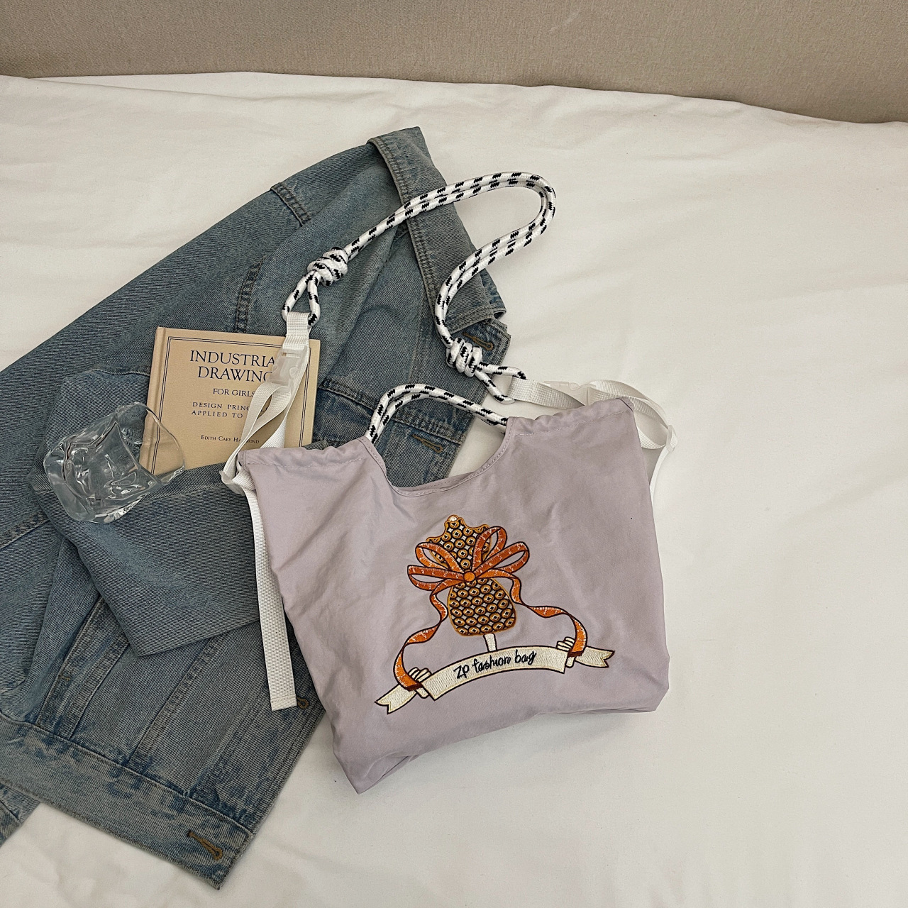 Embroidered shopping bags Nylon cloth flower portable niche fashion shopping bags