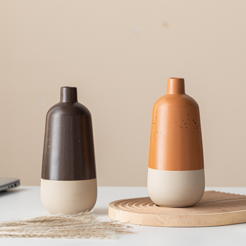 Fine-mouthed flower arrangement ceramic vase high-end modern simple home gift soft decoration ornament