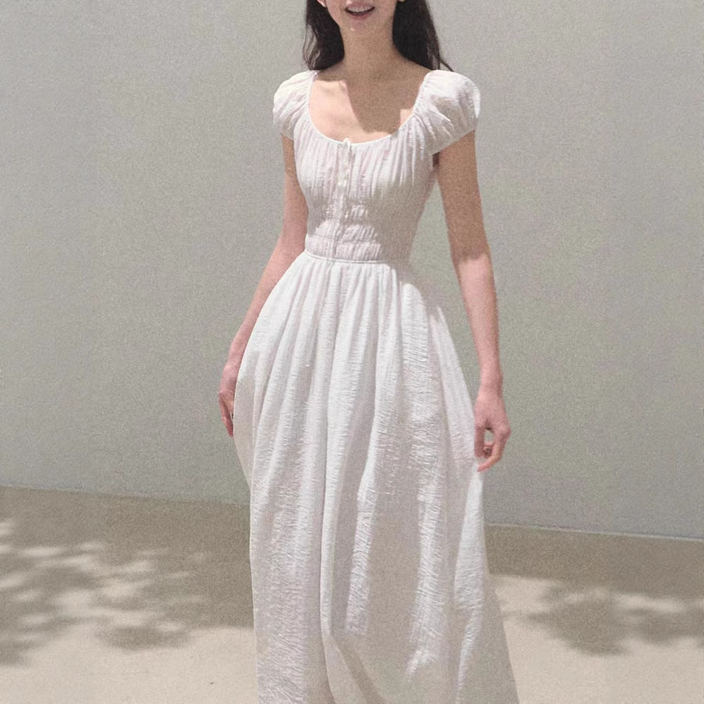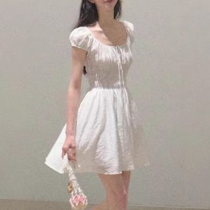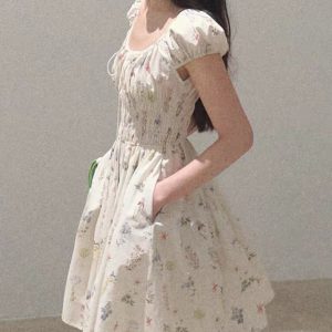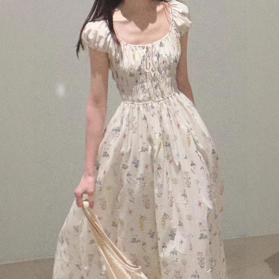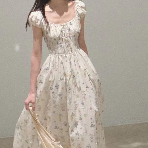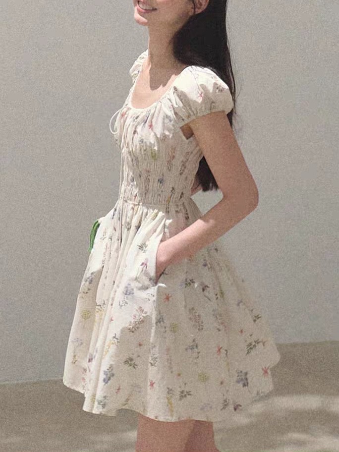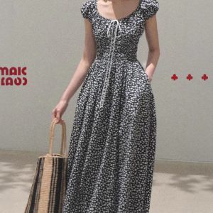 / “Flowering Tomato Leaf” Cotton Plant Graffiti Round Collar Strap Pure Sexy Dress