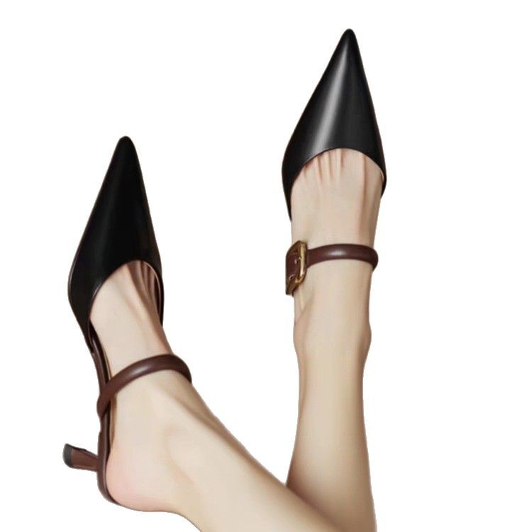 French summer light mouth pointed toe thin heel strap bag head soft leather temperament slippers for women wearing sandals