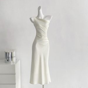 From a moment Beverly’s beautiful wife swinging neckline and off-shoulder dress French temperament women’s three-color waist-closing fish tail skirt