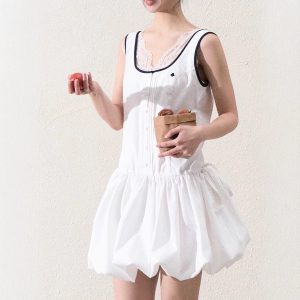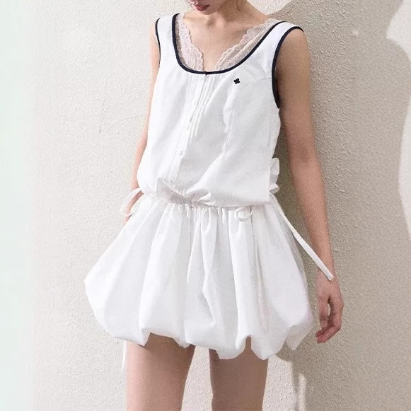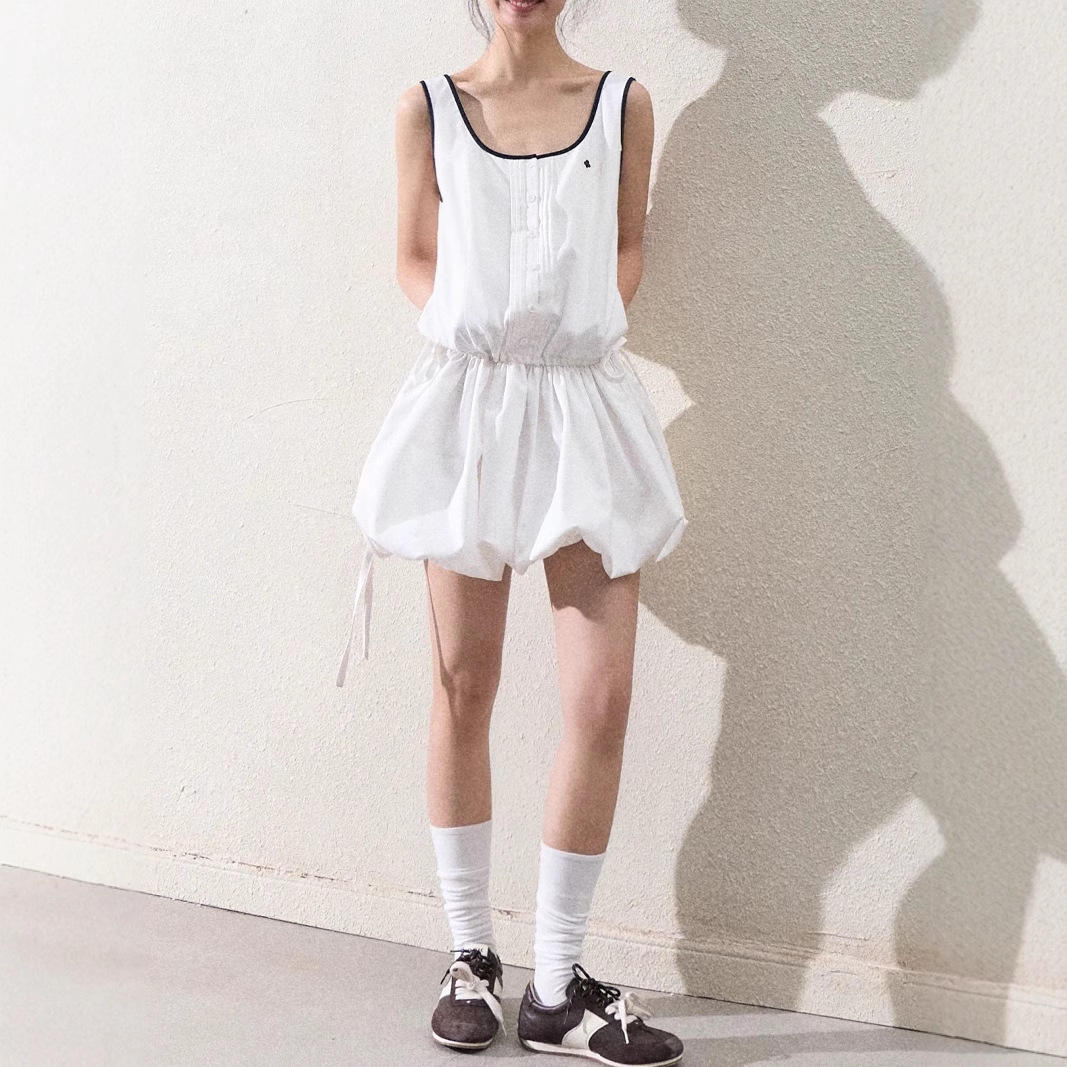 / “Girl’s Disorder” sports and casual fashionable sleeveless flower bud skirt balloon bubble skirt dress