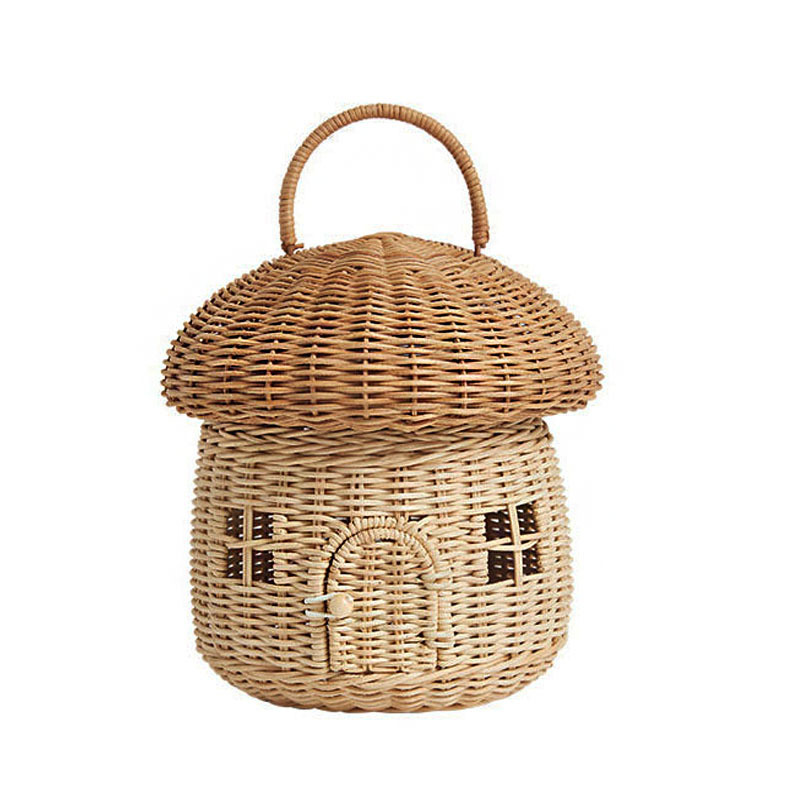 Handmade rattan mushroom-shaped storage basket children’s photography props handbag carry basket children’s room decorations