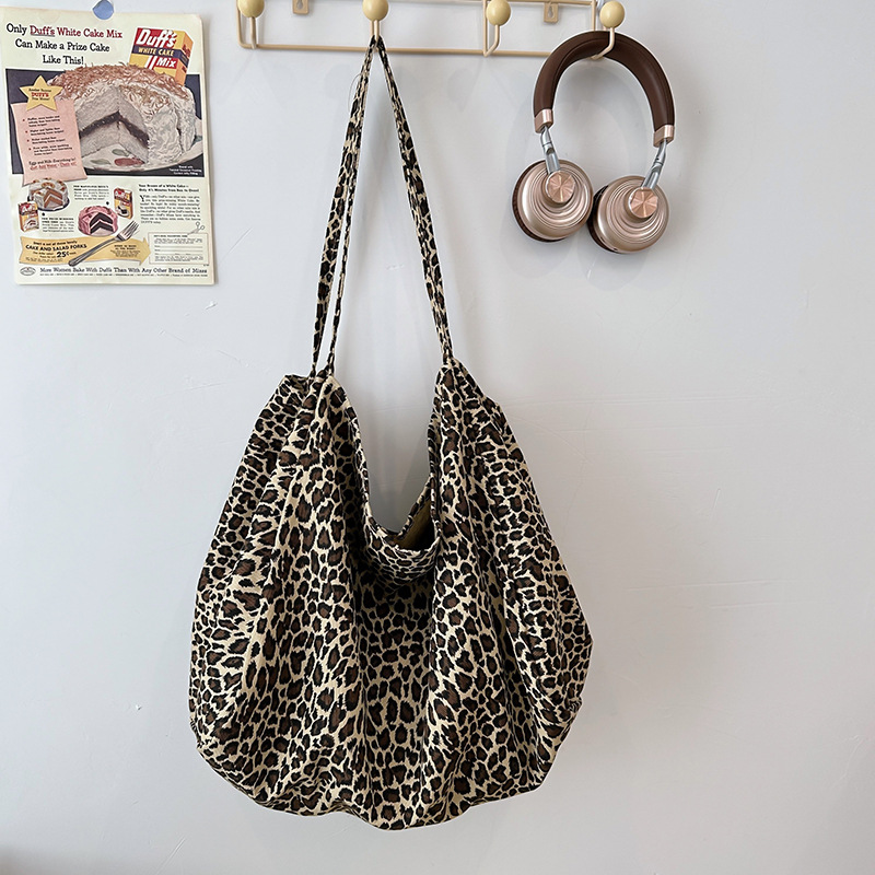 Japanese laziness women’s canvas bag versatile commuter tote bag large capacity leopard print shoulder bag