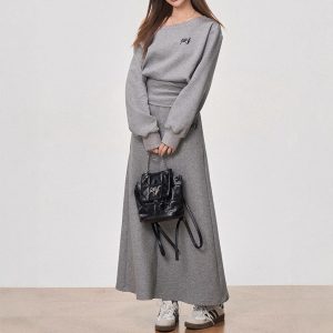 | color | Gray top, trousers, Skirt |