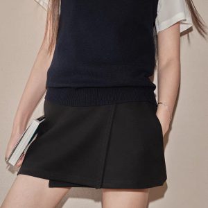 / Korean style Tennis round neck shirt Wool blend vest font hip skirt suit three-piece set