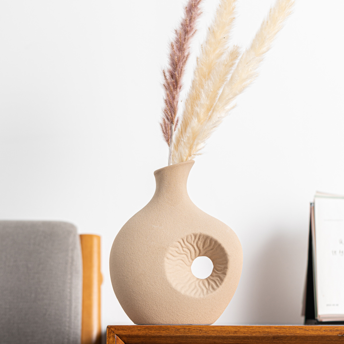 Modern simple slanted sun pattern ceramic vase high-end flower insert light luxury home soft decoration ornaments