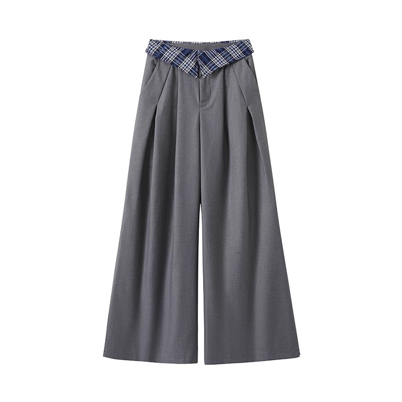 | color | Gray top, Grey wide-leg pants |