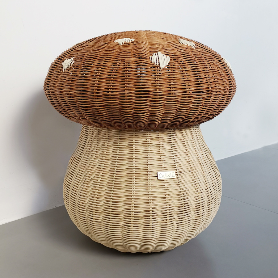 Mushroom-shaped laundry basket rattan storage basket plush toy storage box children’s toys and debris storage box with lid