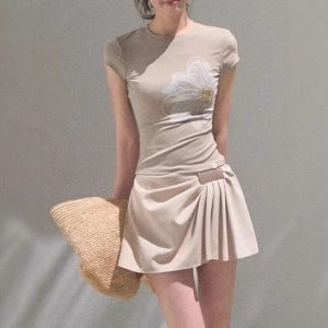 Original artistic smudge mesh niche spliced one-shoulder shirt women’s top