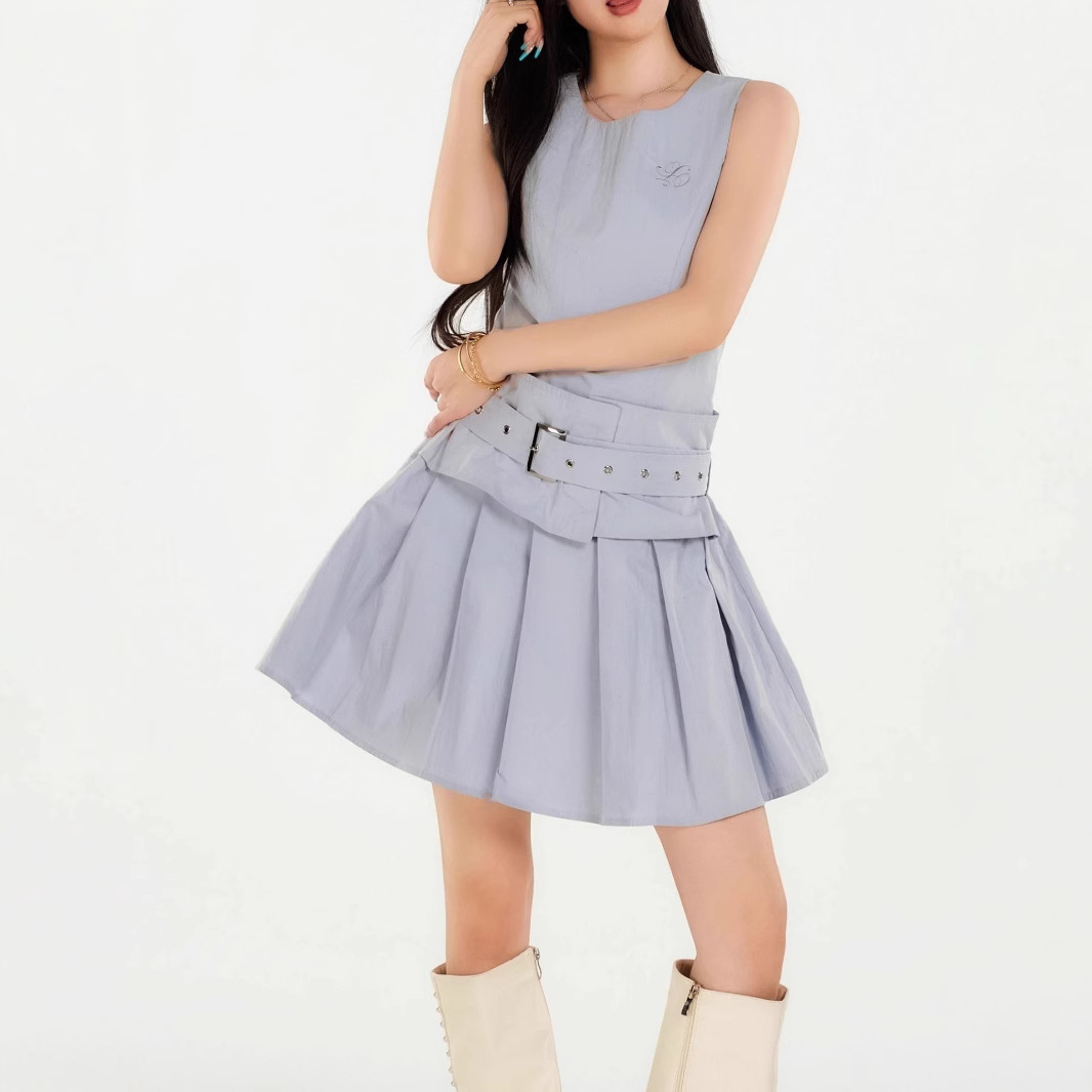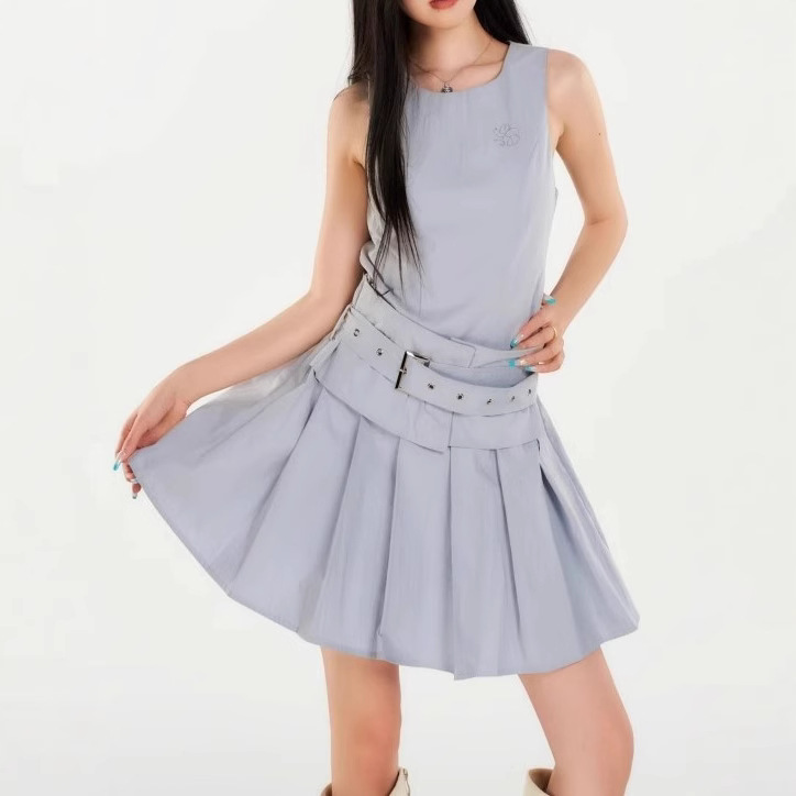 Original design and super slim workwear pleated dress for women’s summer sleeveless vest casual skirt