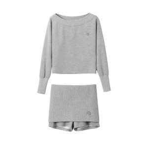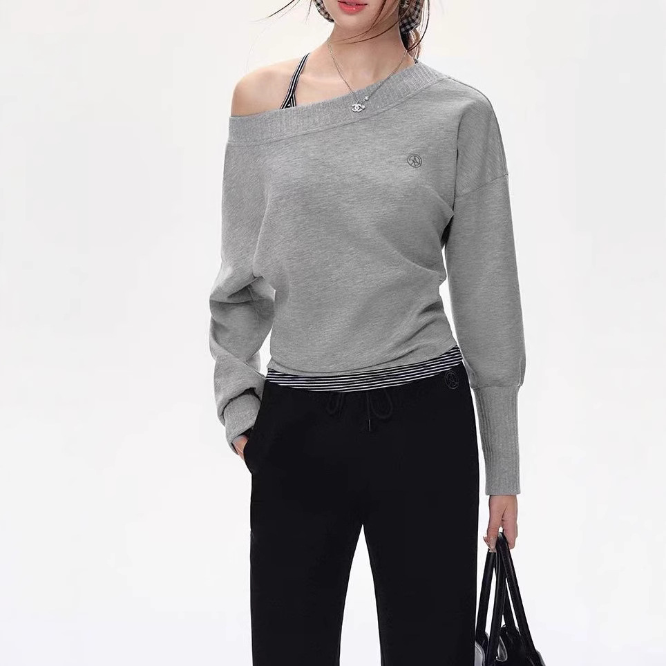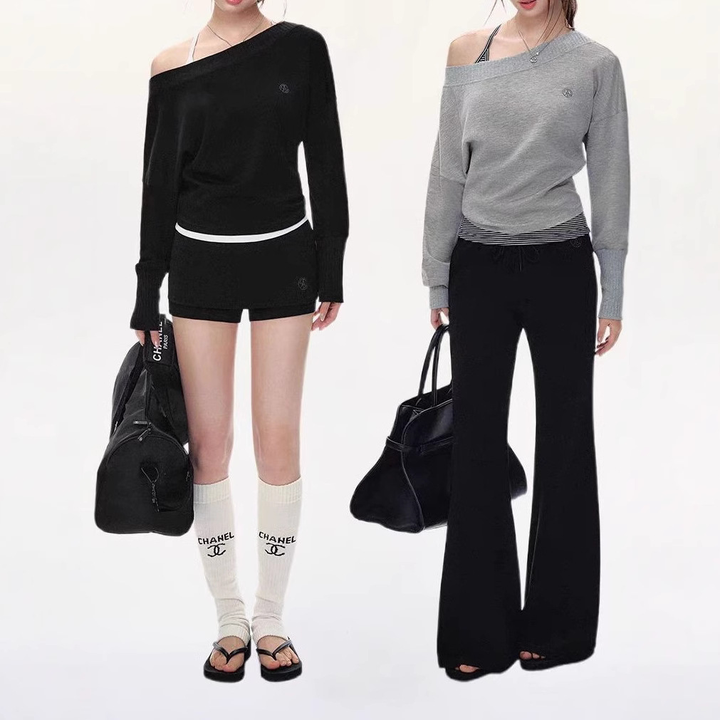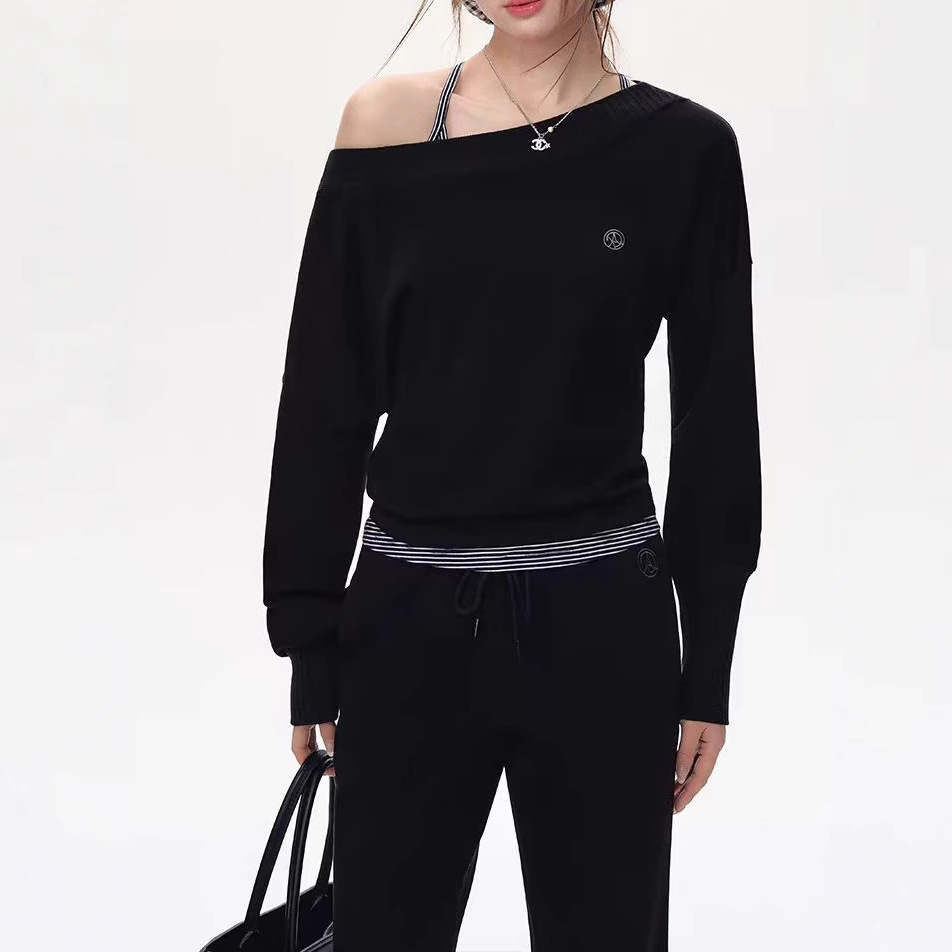 Original off-shoulder bat sleeve long-sleeved shirt for women fashion hoodies suit lazy temperament two-piece set