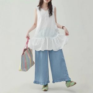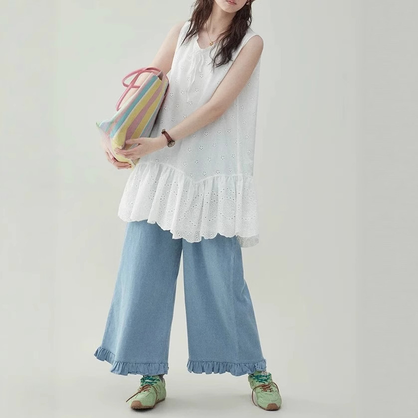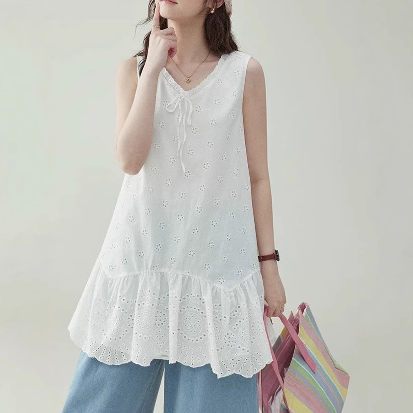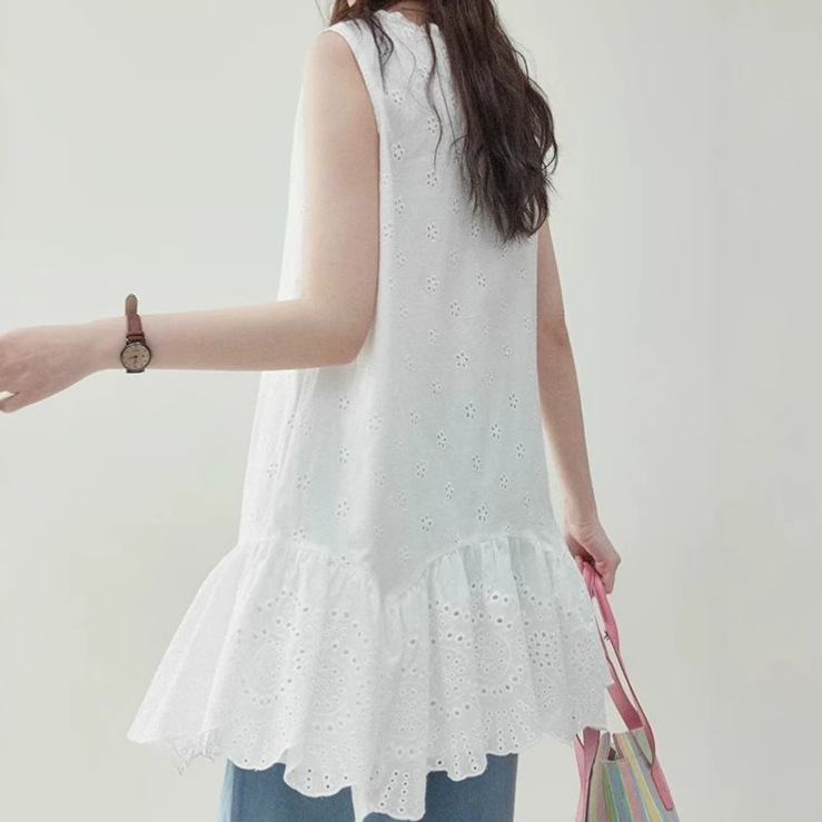 “Original” white small flower pure cotton collar vest dress for women’s summer sleeveless lace skirt