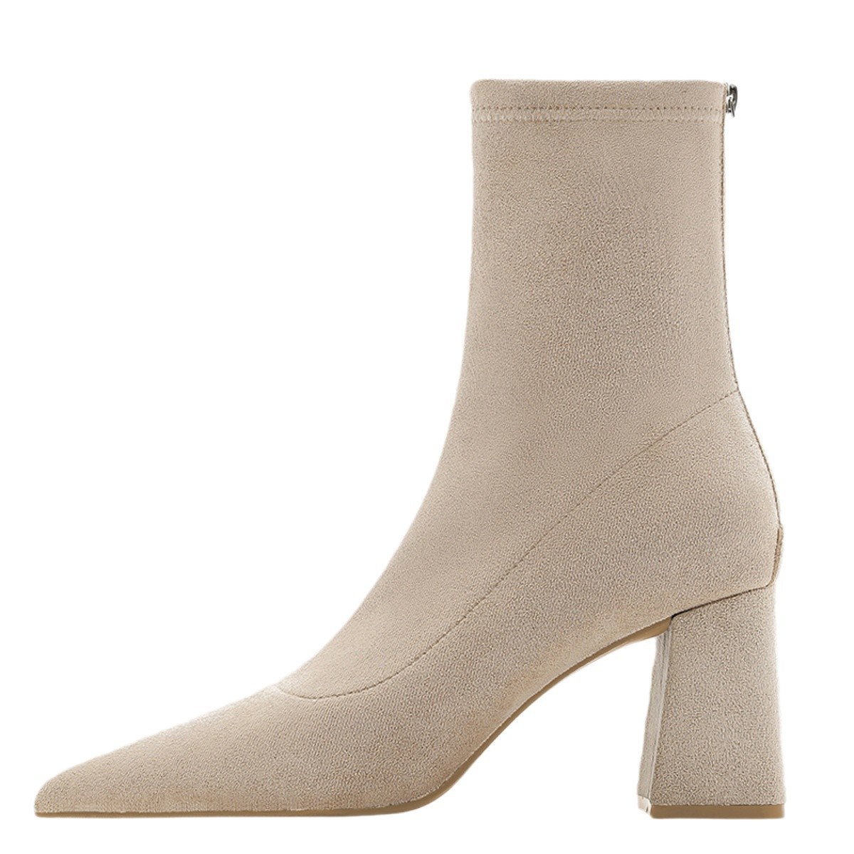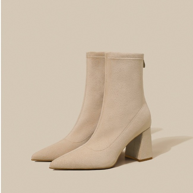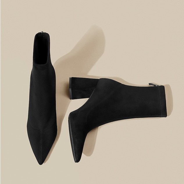 Pointed toe thick heels for women in autumn and winter high heels thin Martin boots plus velvet elastic socks single boots