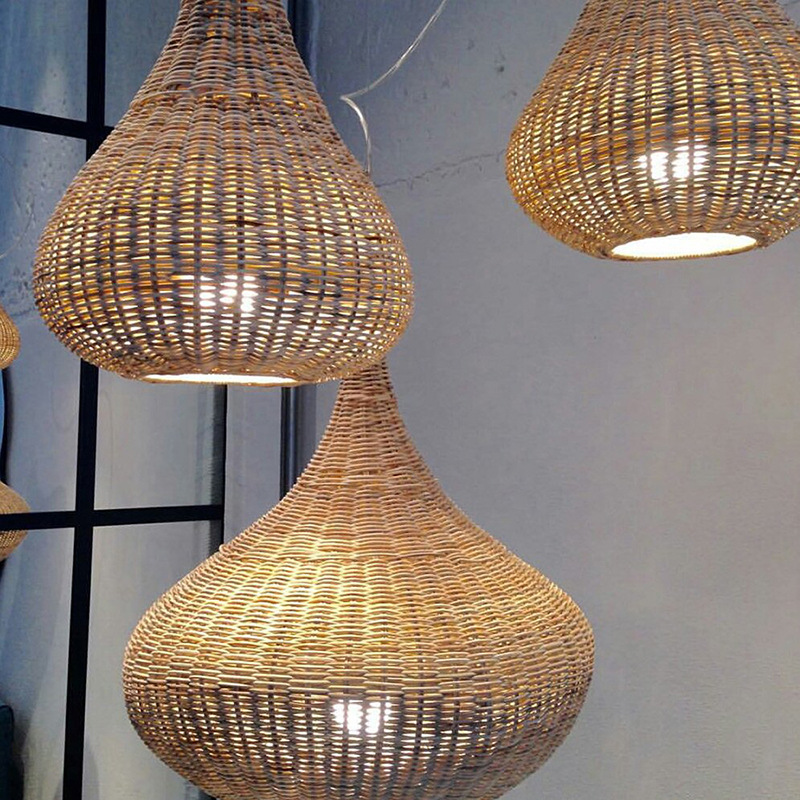 Rattan woven water drop chandeliers restaurant Wasabi light fixtures B&B Hotel Catering and Restaurant Tea Room Retro Rattan woven lights