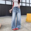 Real shot of summer personalized spray painted denim wide-leg pants for women with high waist design loose trousers