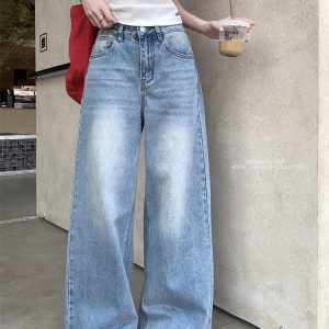 Real shot~Retro washing wide-leg jeans for women in spring high-waisted slimming versatile trousers