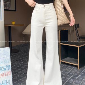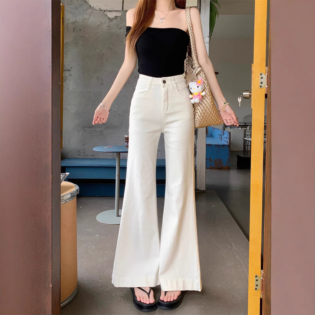Real shot~White flare jeans for women in summer American loose small person without legs flared trousers