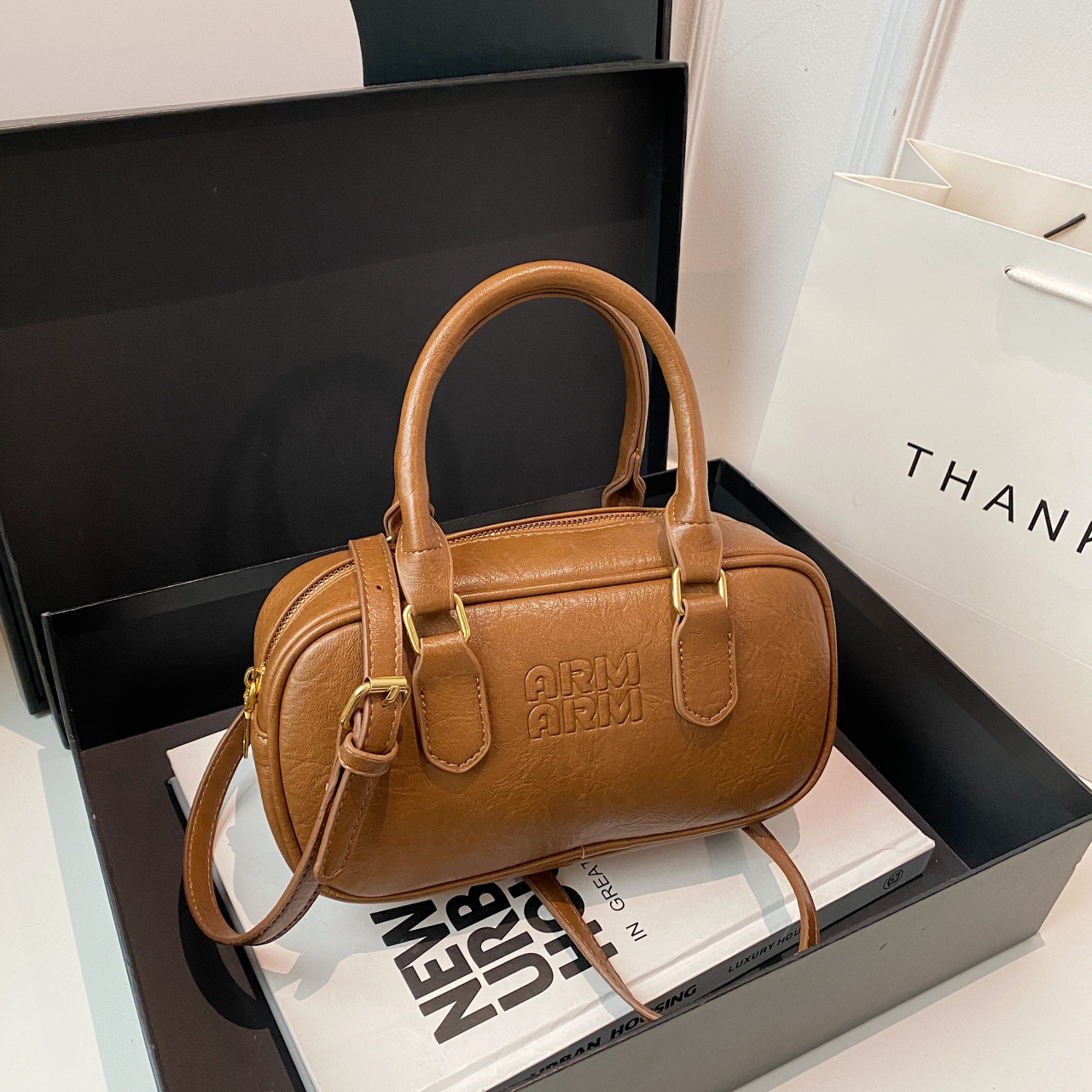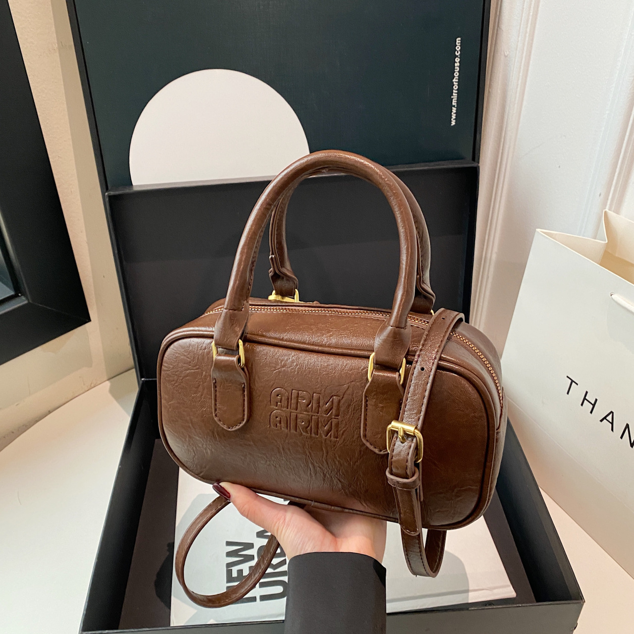 Retro hand-to-door tote outsole bag for women spring and summer trendy small square bag bowling single shoulder diagonal straddle bag