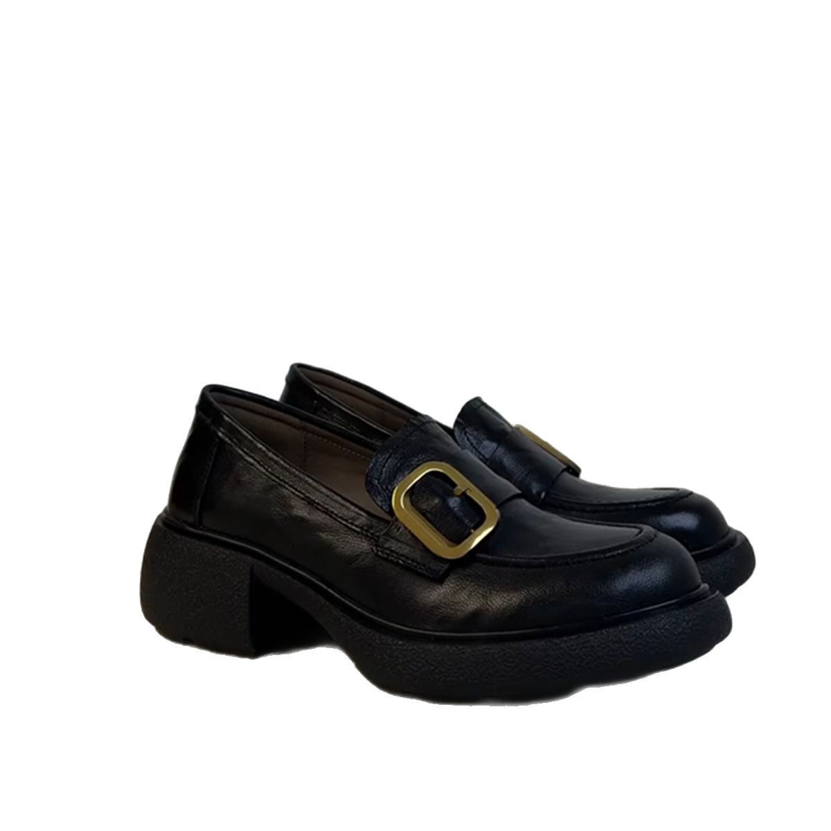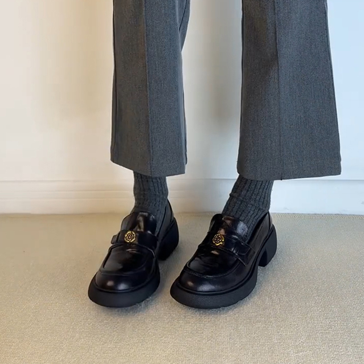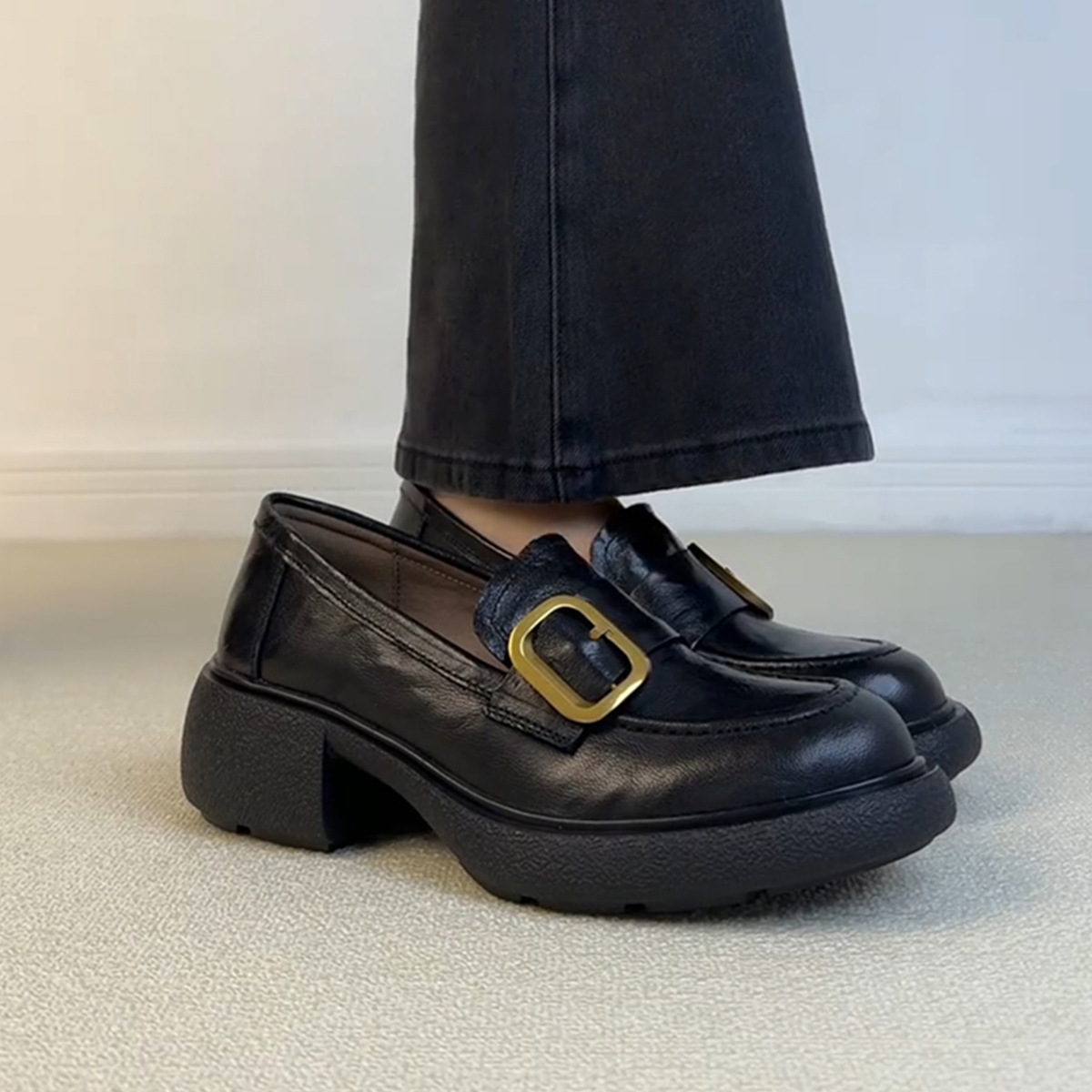 Retro round toe thick sole shoes for women’s college style metal buckle lazy people pedal deep mouth single shoes