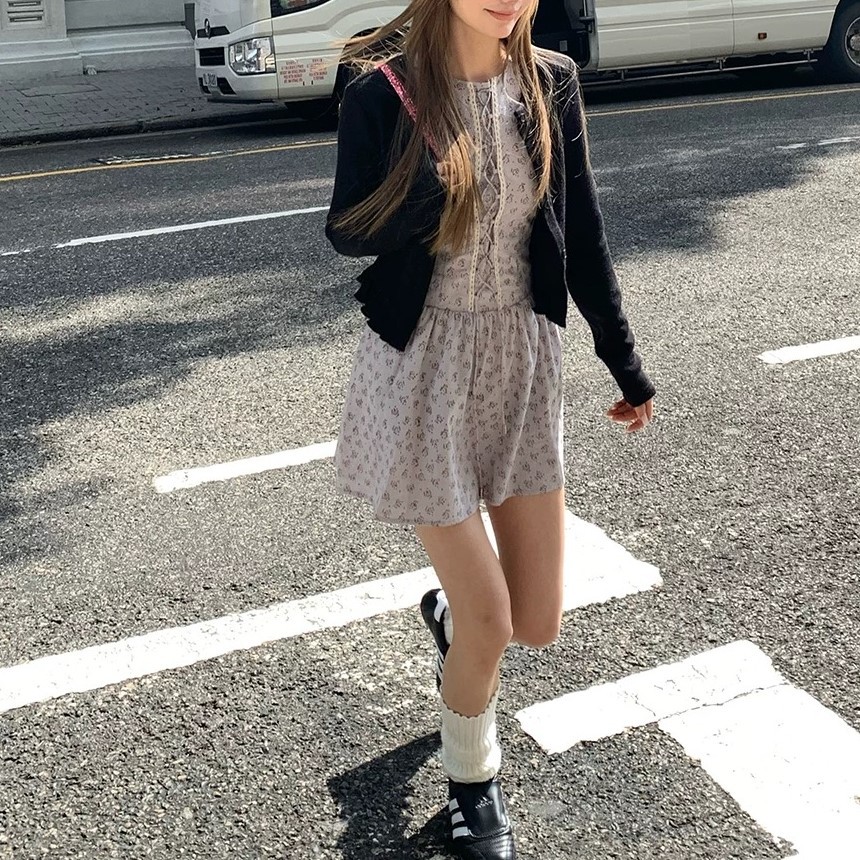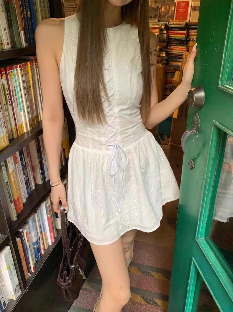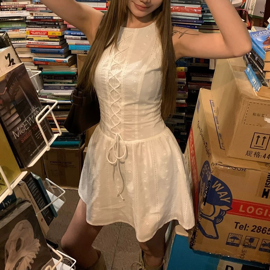 Showa girl, floral sleeveless vest dress, temperament, waist-hugging first love little white skirt