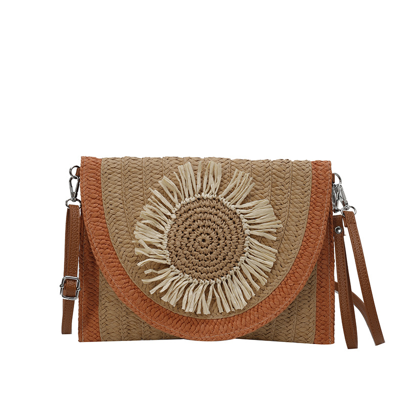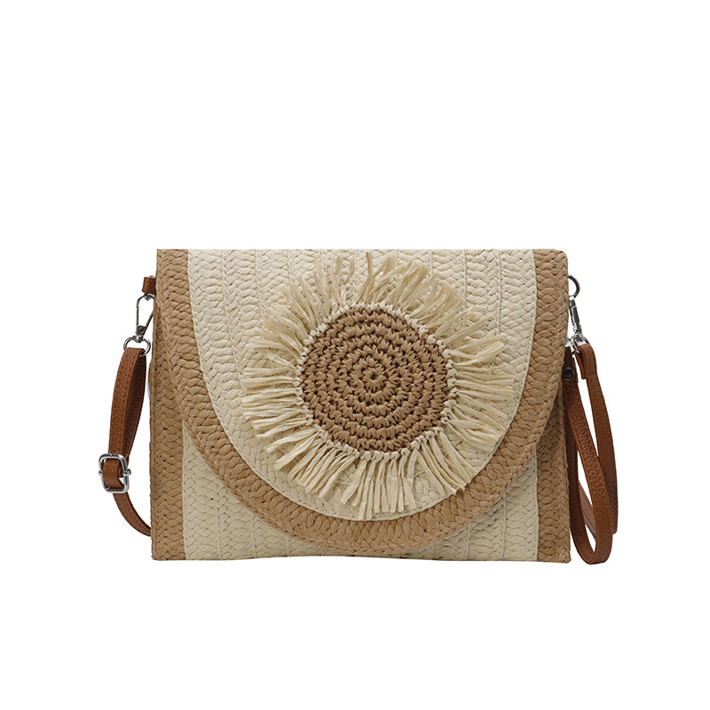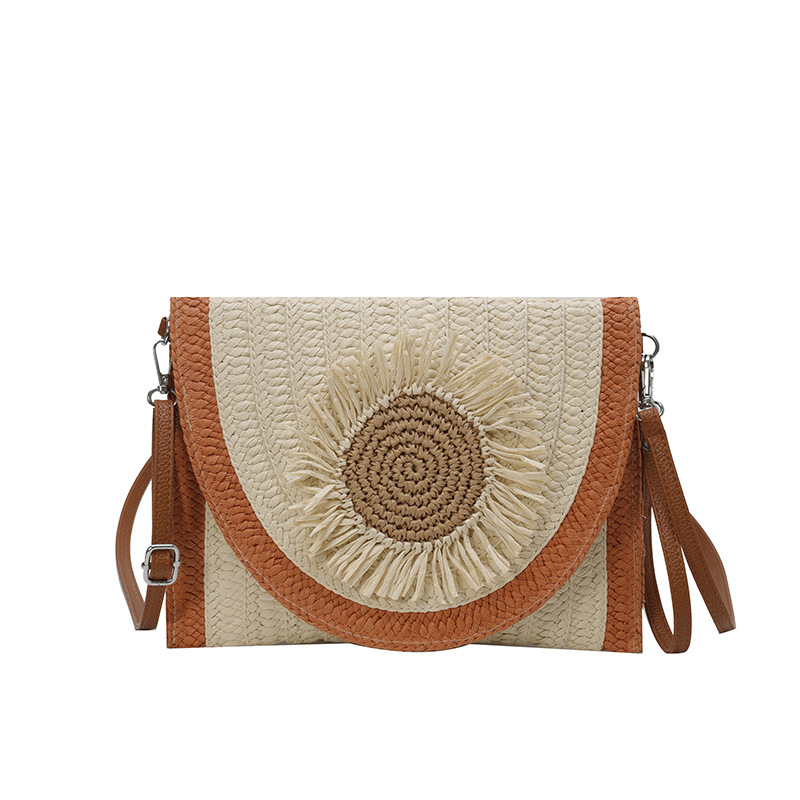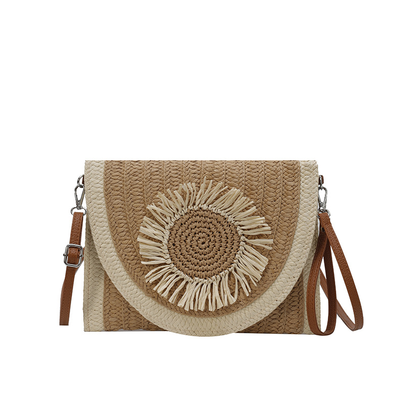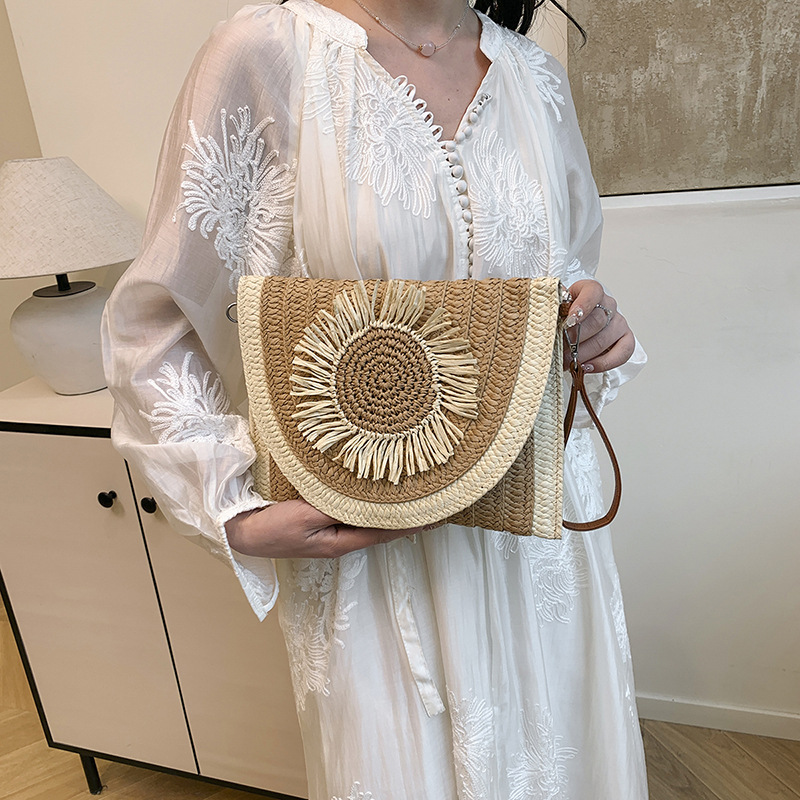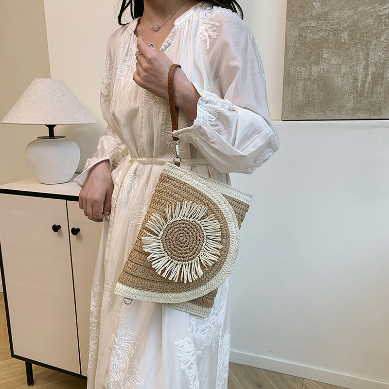 Simple handmade straw woven bag large capacity one-shoulder hand-held beach vacation fashionable versatile crossbody bag