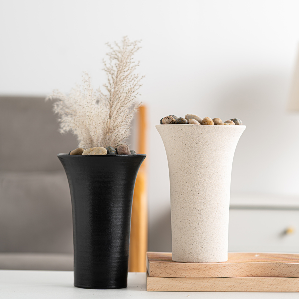 Simple modern ceramic vase abstract art flower arranging device home decoration ornament corrugated long tube flower insert