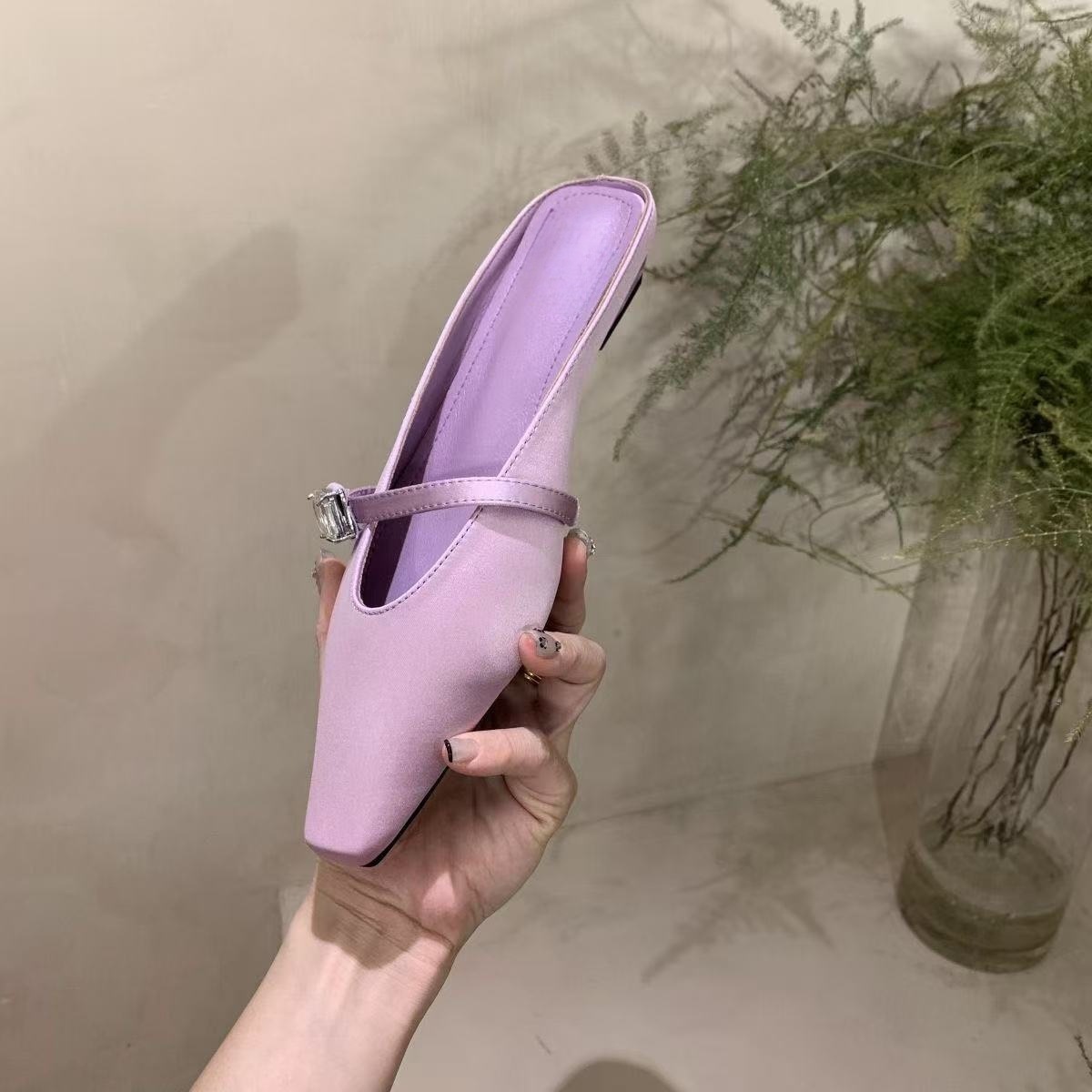 Spring and summer women’s shoes fashionable satin rhinestone square-toe slippers for women flat heel bag half-slippers for women