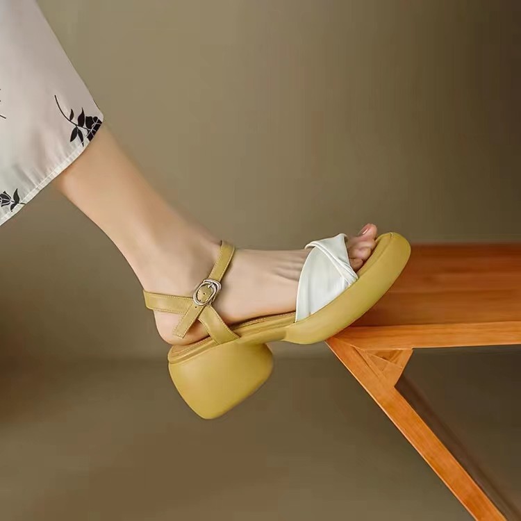 Summer color-blocked large round toe thick-soled thick heeled sandals for women with one-liner straps, open toe, waterproof platform high heels