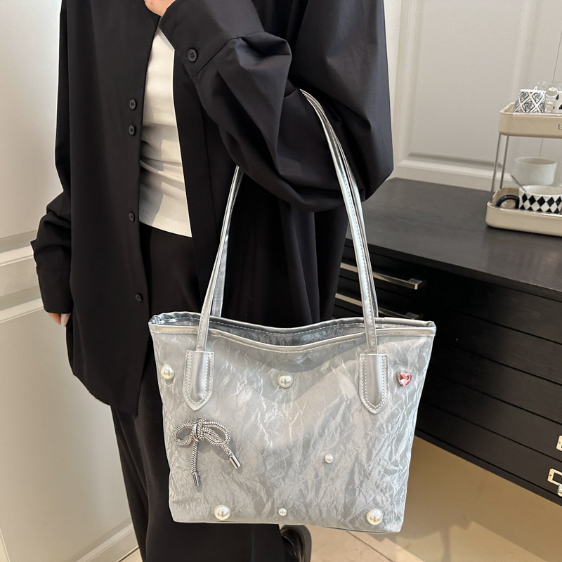 Textured large capacity bag for female college students in class shoulder bag niche design sense commuter tote bag