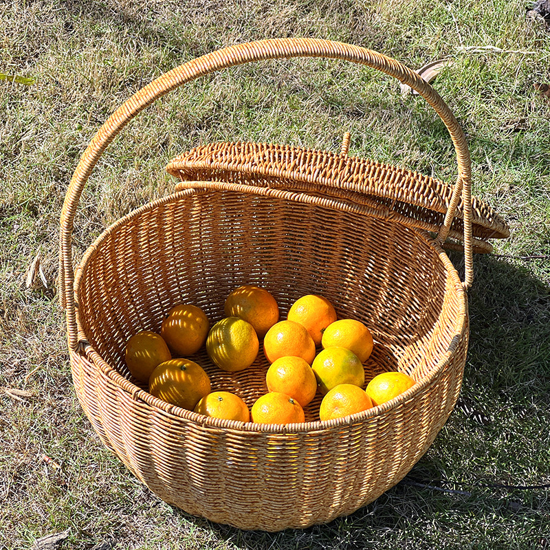 The God of Worshiping Basket Imitation Rattan Basket with Lid Wedding Festive Handheld Basket Hand-woven Picnic Basket Household Large Fruit Basket