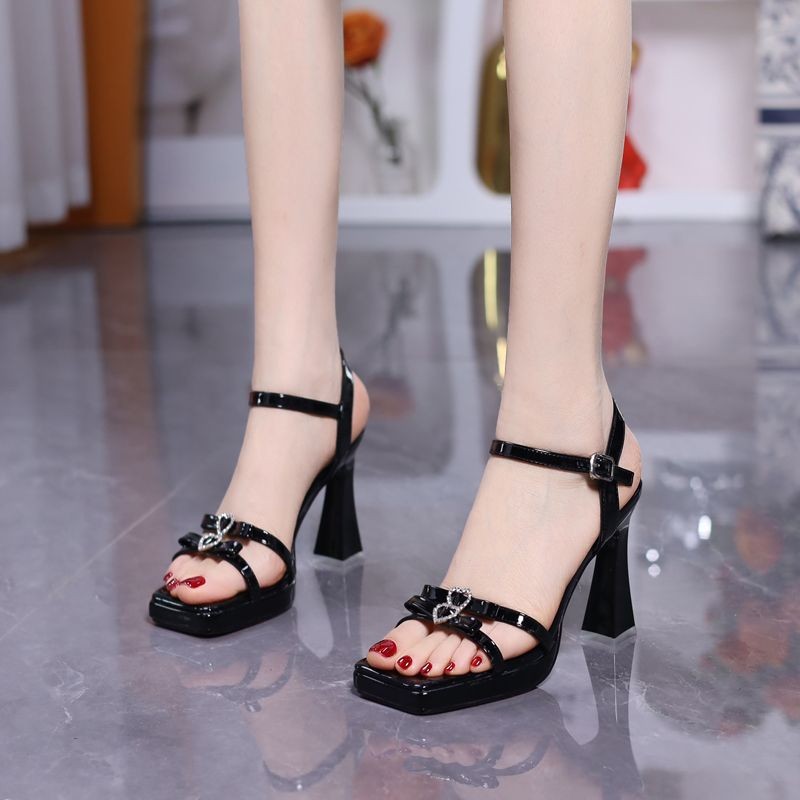 Thick heel open-toed sandals for women in summer with skirt and banquet one-liner strap waterproof platform super high heels