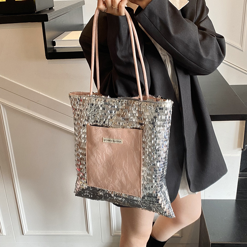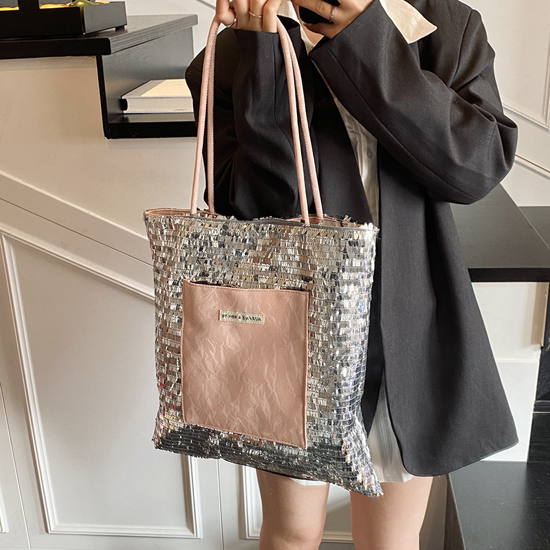 Tote bag for women with high-end super hot silver sequin sparkling shoulder bag polka dot commuting tote bag
