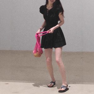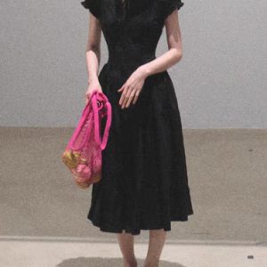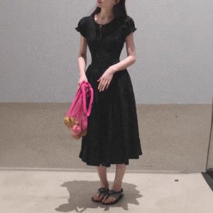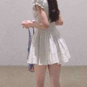 / “When Falling in Love” All-Cotton French Slimming Waist Embroidery Coffee Break Vacation Dress Skirt